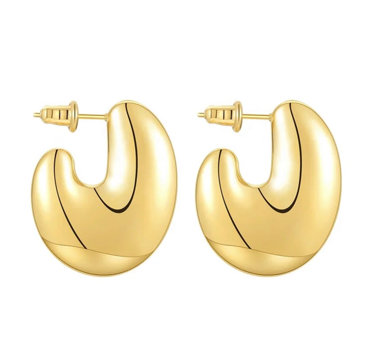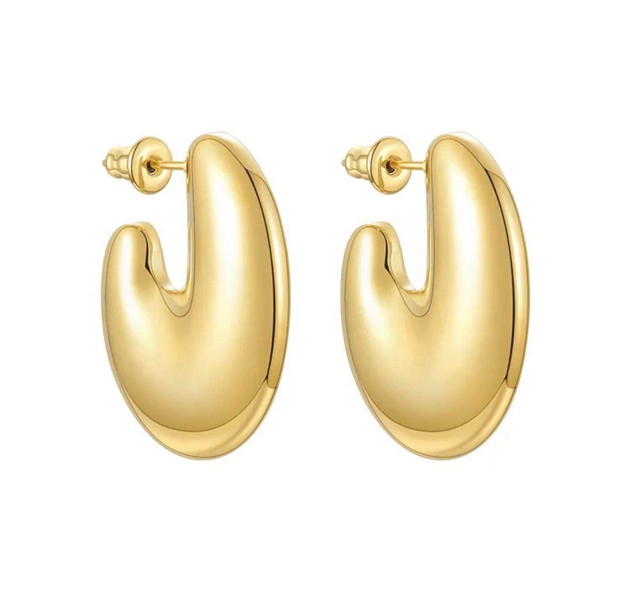 Made from high-quality stainless steel and coated with 18K gold plating, these hoops are both durable and luxurious. The water-resistant feature adds to their longevity, making them perfect for everyday wear.