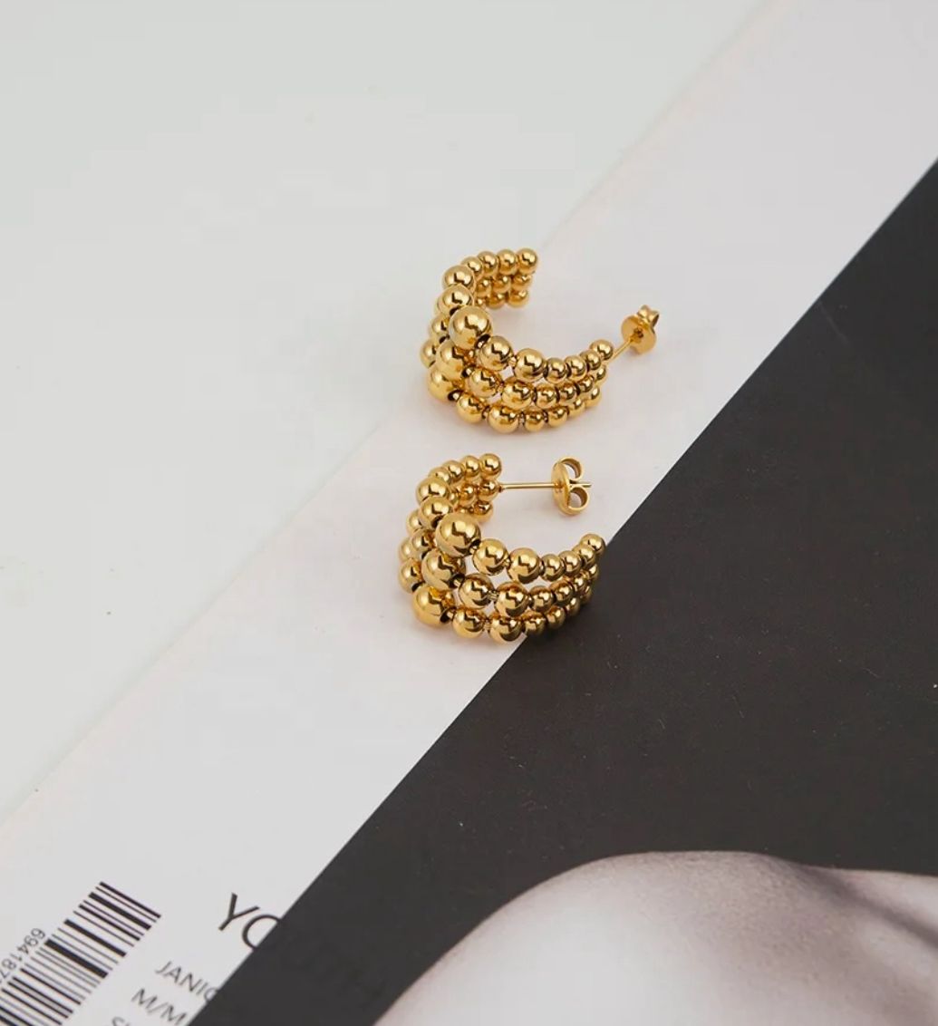 These stylish stainless steel earrings are gold plated with 18k gold, offering a luxurious and durable accessory. With their water-resistant feature, they are perfect for any occasion.